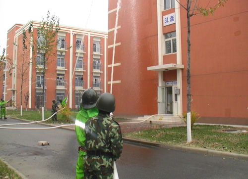 为配合学院冬季消防安全专项整治工作,迎接“11.9”消防安全宣传日的到来,同时为提高处突小分队的实战灭火及救援疏散能力,检验每名队员在实战中的消防技能,保卫处于2011年11月7日至11月8日,在各单位、商铺及相关部门的大力支持与协助下,充分利用学院现有的消防资源,组织处突小分队,按照消防管理中心拟定的《学院消防灭火、救援预案》的相关要求,组织在学生宿舍、学院超市、化学实验楼、图书馆等重点部位成功举行灭火、救援及疏散演习。面对不同的扑救场地,针对“火场”燃烧物不同、被困人员不同、风向对流不同等实际情况,处突小分队成员采取不同的灭火方案,达到了预期的目的。