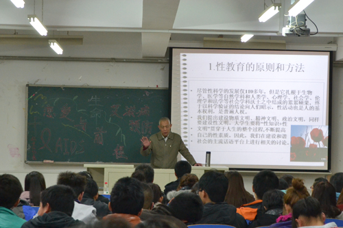 讲座内容分三个层次:大学恋爱问题、恋爱引发的大学性教育问题以及相关的艾滋病预防知识、大学生的健康成长及前程发展问题。刘援朝教授分享了多年工作中积累的恋爱情感方面的案例,向大家剖析了青年人恋爱中常出现的问题以及解决的方法。刘教授认为大学性教育应遵循:平和、平等、尊重、互动、开放、透彻、长期、辐射这16字原则,应本着开展性教育,普及性知识,增进性文明,提高性素质,享有性健康的宗旨教育和引导学生。刘教授进一步就今年世界艾滋病日主题“朝零努力”进行了阐述,并正确诠释了零新增感染、零歧视、零死亡的思想。最后,刘教授就大学生的情感健康与前程发展的关系进行了解读,引发了现场同学的交流讨论和思考。