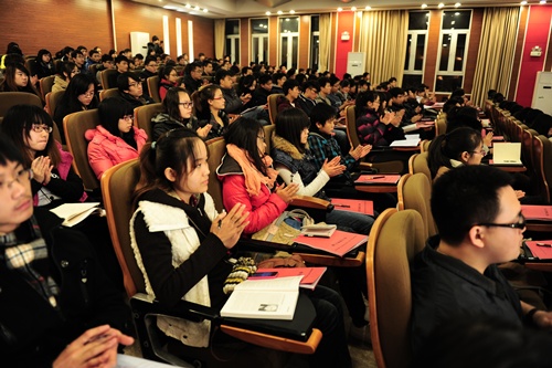 开学典礼结束后,天津市委党校党建研部副主任贾锡萍教授以“学党史,知党情,坚定理想信念”为主题给培训班学员带来本期团校第一讲。贾教授以中国共产党的发展为线索,从中国的革命、建设、改革三个阶段入手讲述了我党成立以来,带领中华民族走过艰辛而荣耀的90年,在党的几代领导人的共同努力下,中国跻身于世界强国之列。贾教授以鲜明的例证,铿锵的字句,风趣诙谐的语言,赢得了全场教师和同学热烈而持久的掌声。