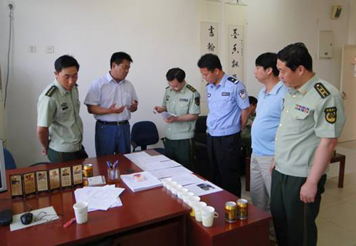 督察组正在检查我院消防规章制度建设