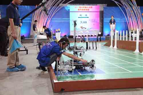 7月1日,首先进行的是复赛32进16的比赛,我院机器人代表队第9个出场,对阵一方为台湾明新科技大学机器人代表队,进过一番激烈的角逐,我院机器人代表队率先完成“祈福荷灯”的全部任务,完胜对手,挺进全国16强。在随后进行的复赛16进8的比赛中,我院机器人代表队遭遇了“老牌劲旅”—哈尔滨工业大学代表队,技术上的失误和较为紧张的心理使得我队惜负对方,最终止步于全国16强。