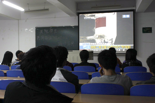 10月1日,“嫦娥二号”满载着全国人民的期待和祝福,于西昌卫星发射基地顺利升空,为伟大祖国61岁寿辰献上了又一份厚礼。当晚,我院师生齐聚8教102教室,观看“嫦娥二号”发射直播,共同见证了中国航天事业的辉煌时刻,为“嫦娥”二次奔月喝彩,为祖国母亲的繁荣富强欢呼。