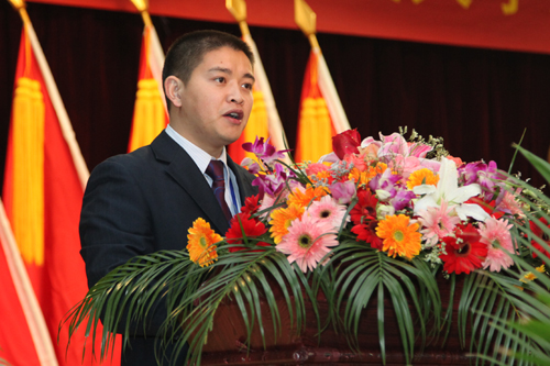 团市委组织部部长李庆松发表讲话。他首先肯定了我院自建院以来取得的辉煌成就及优异成绩,并对我院教育工作提出了各方面的建议:鼓励团组织辅导青年将所学知识落实到实践服务于社会;充分调动青年的积极性和创新性,推动青年自主创业;大力推进团的自身建设,完善团的各项工作。