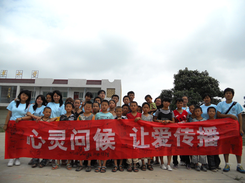 我院心理协会暑期实践团于2010年7月21日从北京出发,22日上午到达西安白水县,随即前往富卓村,了解当地基本情况后走访了部分留守儿童的家庭。实践团成员先后与留守儿童进行交流与沟通,使他们渐渐敞开心扉,随后对各留守儿童家庭状况进行了全面的了解,并做了相关的调查问卷。实践中期,实践团通过授课、组织各类活动等使孩子们认识外界、开拓视野,临行前的团体凝聚力训练和趣味运动会更使他们深刻体会到了团队的重要性。最后,孩子们在横幅上签名写下心愿,立志发奋学习,创造美好的明天。