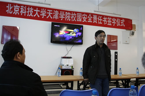 副院长曹连东在会上讲话。一要提高认识,通过签订责任书,对安全工作要有更清晰地认识,做到警钟长鸣;二要贯彻思想,把核心思想贯穿到每个环节,注重落实,各部门要迅速排查安全隐患,在工作和生活中不仅要有安全意识,还要有实际行动,落实到各个方面;三要落实责任,要求各部门、各系部务必要与所属单位及人员层层签定安全工作责任书,将安全责任细化到所有单位和人员。