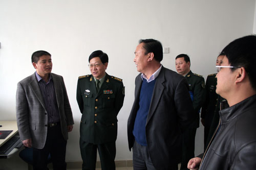 王书记向到访客人表示欢迎并就我院情况作了简要的介绍,罗老师就学生军训工作、征兵入伍工作、国防教育开展等武装部各项工作进行了一一介绍,随后邀请考察团一行参观我院基层武装部工作成果展示。