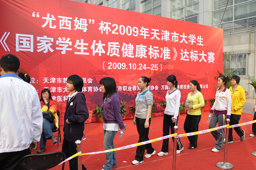 为了进一步贯彻落实《中共中央国务院关于加强青少年体育增强青少年体质的意见》(中发[2007]7号)、《中共天津市委天津市人民政府关于加强青少年体育增强青少年体质的实施意见》(津党发[2009]1号)文件精神,天津市教务于2009年10月24日至25日在天津医科大学举行《国家学生体质健康标准》达标赛。这次比赛设置男子项目(5项):身高标准体重、肺活量体重指数、跳绳、掷实心球、1000米;女子项目(5项):身高标准体重、肺活量体重指数、仰卧起坐、立定跳远、800米。