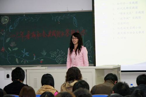 10月27日晚,我院2009年暑期团队社会实践答辩展示会在9教303室举行。团委副书记罗富臣、李静雯、张琦、各系分团委书记及团委各部长参加了答辩展示会并担任评委,团委实践部部长潘柏夷主持。本次评选根据实践主题、实践任务完成情况、活动形式、实践报告质量、实践影响力及宣传号召力、团队PPT制作及现场演说演示等方面进行综合评定。来自学院各社团和各系的15个暑期社会实践团队参加本次答辩会,答辩团按照抽签顺序依次上台进行答辩展示,每队答辩时间为5分钟,各团队通过演讲、PPT和视频资料来展示团队的实践成果。