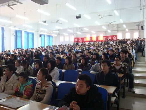 预计下午2点开始的宣讲会,1点30分已经座无虚席。卓达集团天津分公司的人力资源经理负责此次宣讲。整个宣讲会主要由两部分构成,首先是卓达集团通过播放企业宣传片等方式向我院学生全面展示集团概况、实力和理念。