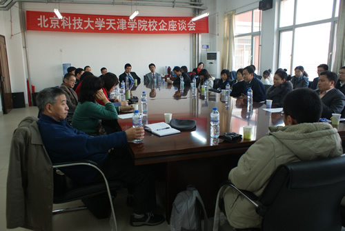 校企座谈会在会议室召开。神州数码、中德银行、合生创展公司、中国平安人寿天津分公司、北京奥美达科技公司等用人单位人事领导参加了座谈。土木工程系系主任刘胜富教授、机械工程系系主任冯爱兰教授、信息工程系系主任许学东教授、经济系管理系系主任王宾容教授、法律系系主任杜晓智教授、外语系系主任梁素琴教授、学生处处长盛佳伟、就业指导中心副主任郭雅娟、岳强及各系党总支书记参加了座谈会。