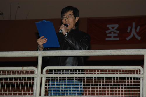 院长郭景文教授致开幕词并宣布比赛开始,体育部主任吴铁桥鸣枪发令,第四届“一二•九爱我中华”火炬接力赛拉开帷幕。