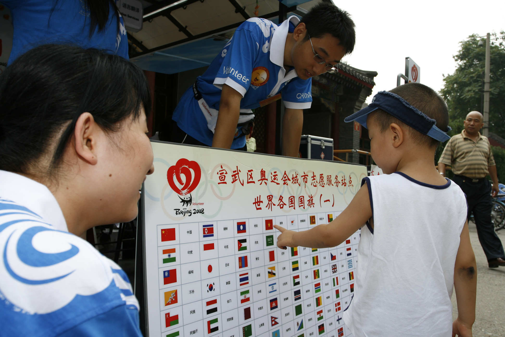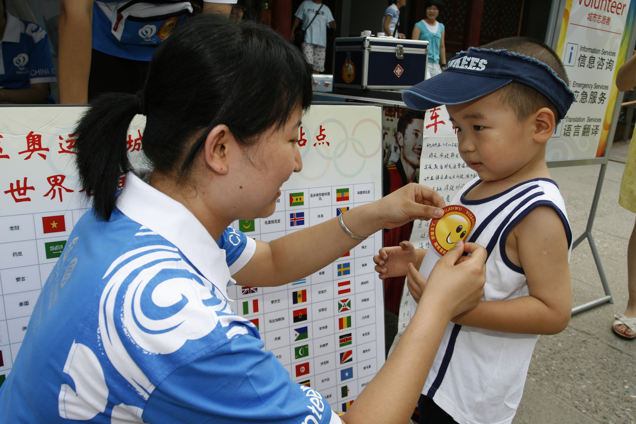 此次,我院的城市志愿者被分派到大观园西门城市志愿者服务站点。这个站点位于大观园西门前,主要是负责回收废电池和利乐包。同时,其最大特色是设有一棵“许愿树”——一棵手画的许愿树,可以让路过的市民和游客写下对北京奥运和志愿者的祝福与愿望, 以实现全民参与奥运的美好愿望。“许愿树”受到了热烈欢迎,大人小孩纷纷参与,在“许愿树”上写下自己的祝福及愿望,一群来自澳洲的游客在“许愿树”写道,“Friendly country , friendly people”,表达了对我们中国人民的美好之情。
