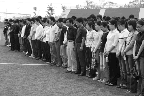 5月19日14时28分,在西区体育场举行全院默哀仪式,全体教职工和无课专业学生参加。上课班级将在任课教师的带领下,在教室默哀,哀悼5•12汶川大地震中遇难同胞。