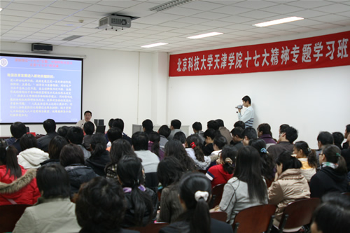 11月29日下午,我院在图书馆会议室举行院、处级十七大精神专题学习班首讲,北京科技大学党委书记罗维东莅临并作十七大辅导报告,首讲由北京科技大学校长助理、问鼎国际