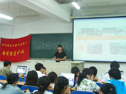 本次大赛共有13个班级和6个社团代表参加,比赛形式以网页作品的展示为主。各参赛队都满怀激情和信心,以自己最佳的表达方式,展现了不同风格的主页设计作品,五彩缤纷的页面,清新格调的设计,动态技术的运用征服了在场的评委和观众。