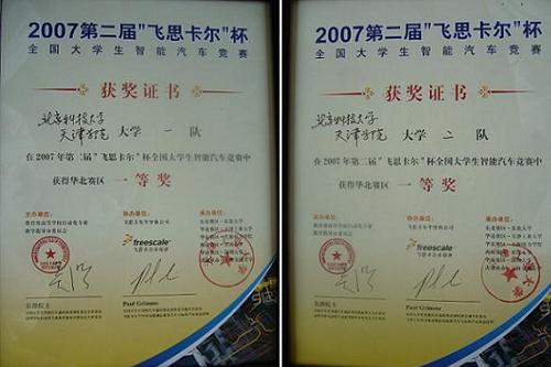 二队。经过两天的比赛,我院二队与一队分别以华北赛区第9名与第10名的成绩晋级全国总决赛,并荣获2007年第二届“飞思卡尔”杯全国大学生智能汽车竞赛华北赛区一等奖。