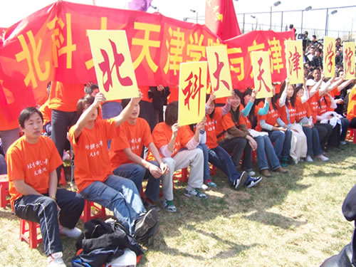 我院学生身穿统一橙色T恤,高举横幅“北科大问鼎国际