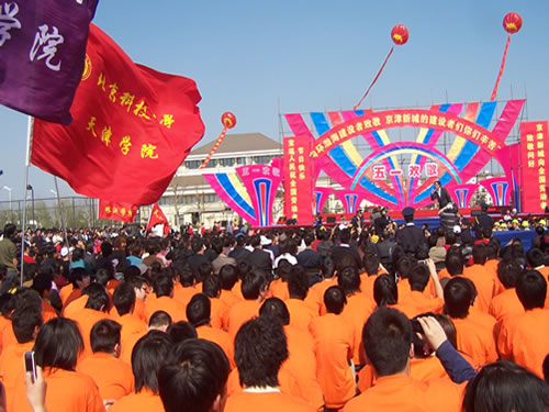 4月17日下午,中央七台《乡村大世界》摄制组首次来到京津新城,我院九十余名学生代表参与录制五一特别节目“建设者之歌”。