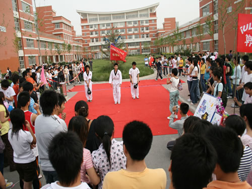 “社团文化展示”以“步行街”的形式,将我院27个社团组织一年来的活动成果集中展示,各社团组织在“步行街”中用宣传展板精心布置展台,同学们可以通过“步行街”直观浏览社团成果。活动邀请党委副书记、副院长王斌和学生事务部主任盛佳伟剪彩。在社团联合会布置的中心舞台上,健美操协会和跆拳道协会分别表演了“踏板操”和“跆拳道精神”,精彩的表演与高难度的动作赢得了同学们的阵阵喝彩。
