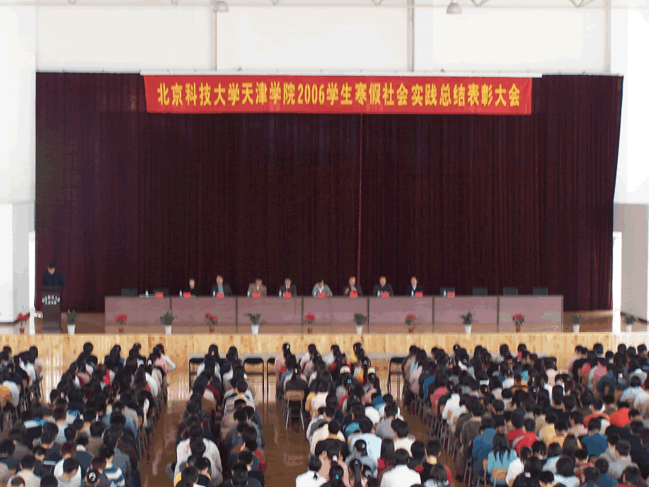 4月4日下午,问鼎国际 2006学生寒假社会实践总结表彰大会在体育馆隆重举行,我院常务副院长郭景文、副院长梁云东、副院长王斌、财务总监张军、综合办公室主任李帅、体育部主任吴铁桥、教育技术中心主任许学东、学生事务部主任盛佳伟、副主任张卫、教学事务部副主任吴平、各专业辅导员及全体学生参加了表彰大会,院领导为获奖同学颁发了荣誉证书,并鼓励同学们再接再厉,在社会实践中锻炼自己。