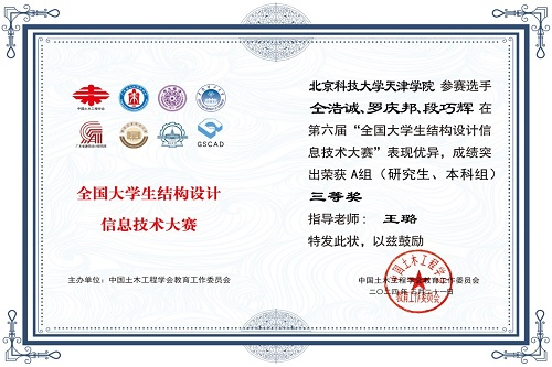 近日,第六届全国大学生结构设计信息技术大赛获奖名单揭晓,城市建设学院的仝浩诚、罗庆邦、段巧辉三位同学在激烈竞争中脱颖而出,荣获A类组团队(研究生、本科组)三等奖一项,展现了我院学子的专业实力和创新能力,是学院深化教学改革、推进实践教学模式创新的可喜成果。本届赛题在实际项目设计中属于中高难度,这一成绩不仅是对他们扎实专业知识和出色实践能力的认可,更是对城市建设学院教育质量和教学水平的有力证明。