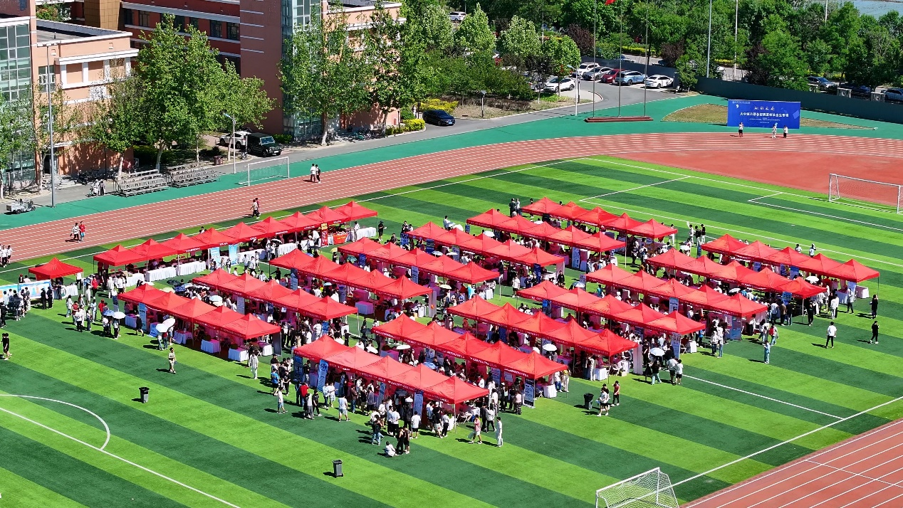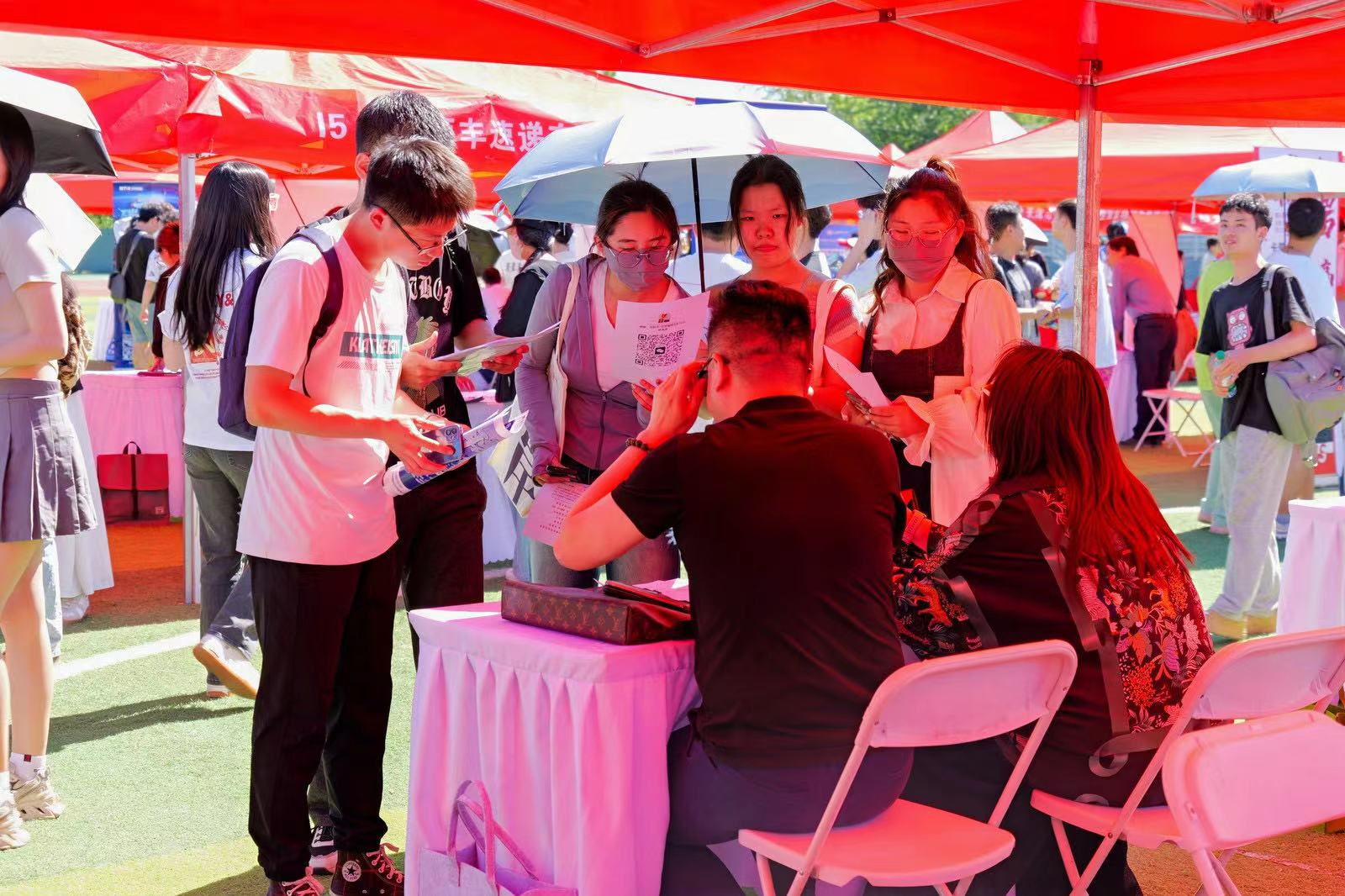 5月15日下午,“实”现梦想,“就”等你来 2024年春季就业\实习双选会在学院西操场举行。此次双选会得到了天津市大中专就业指导中心、宝坻区及各区人社局、天津市就业促进会、京津中关村科技城等相关部门的大力支持,共计150余家单位参与招聘岗位,涵盖机械制造、建筑工程、计算机软件、金融、管理和服务等多个行业领域,为毕业生提供就业与实习岗位4000余个。宝坻区人力资源和社会保障局局长王宝生、副局长李伯军一行莅临双选会现场指导工作,学院院长丁煦生、党委书记叶振楠以及相关部门负责人现场与参会企业深度交流,了解用人单位招聘需求,介绍学院人才培养情况,积极推荐学生实习和就业。