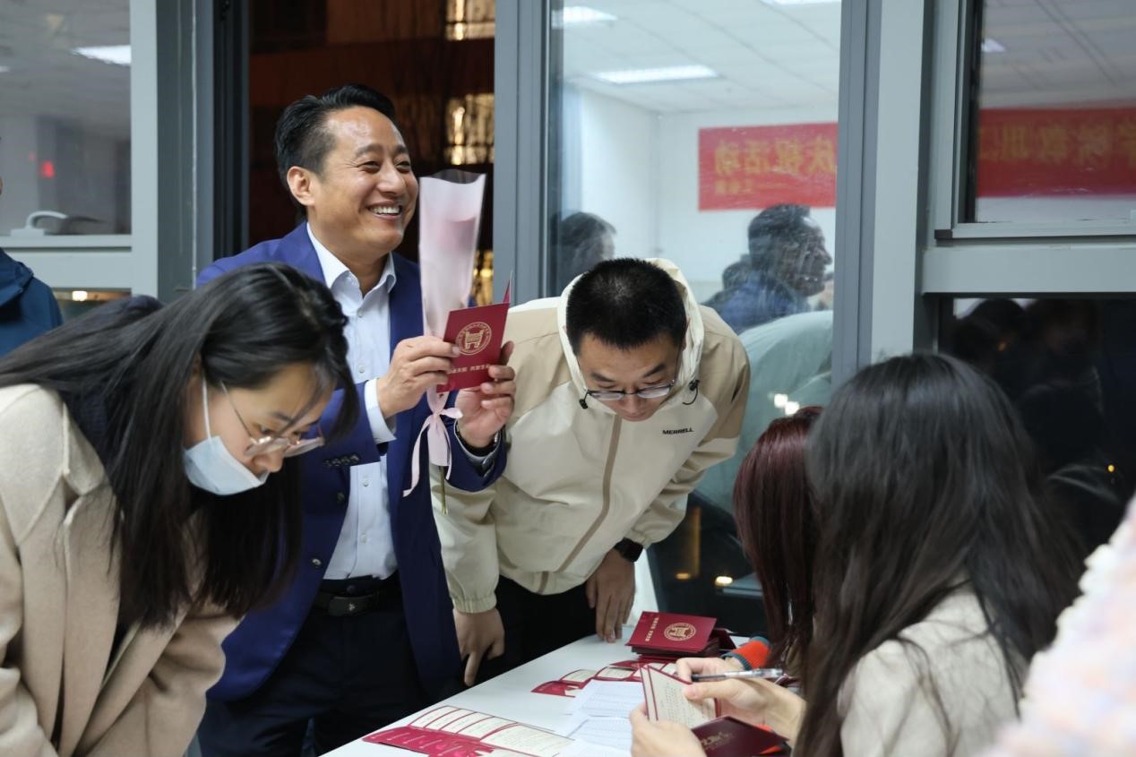 2024年3月27日晚7点,学院工会在教职工活动中心举办“情暖问鼎 、共贺生辰”2024年第一季度集体生日,学院院长丁煦生,副院长张永锋,副院长、财务总监王俊敏,党委副书记、工会主席郭雅娟出席活动,百余名教职工及家属参加了此次活动。