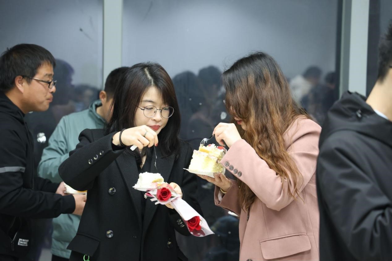 教职工合影留念,共同唱响生日快乐歌,共切生日蛋糕。在温馨欢乐的气氛中,大家品尝蛋糕、水果,分享喜悦,互相送上祝福。此次集体生日会是由工会、后勤处、学院办公室、材环学院共同组织筹办的第一次集体生日活动,学院教职工广泛参与,增强了学院凝聚力,让教职工在学院这个大家庭中快乐工作、幸福生活。
