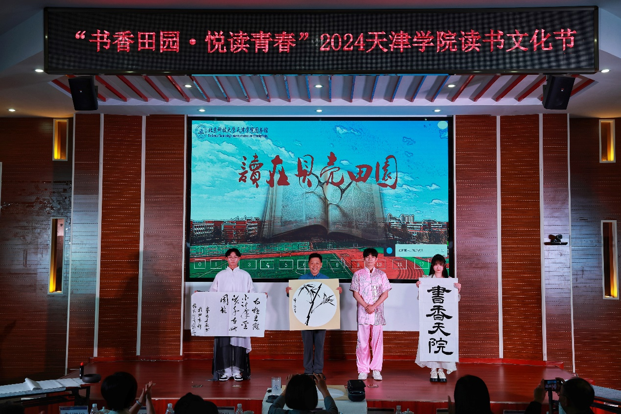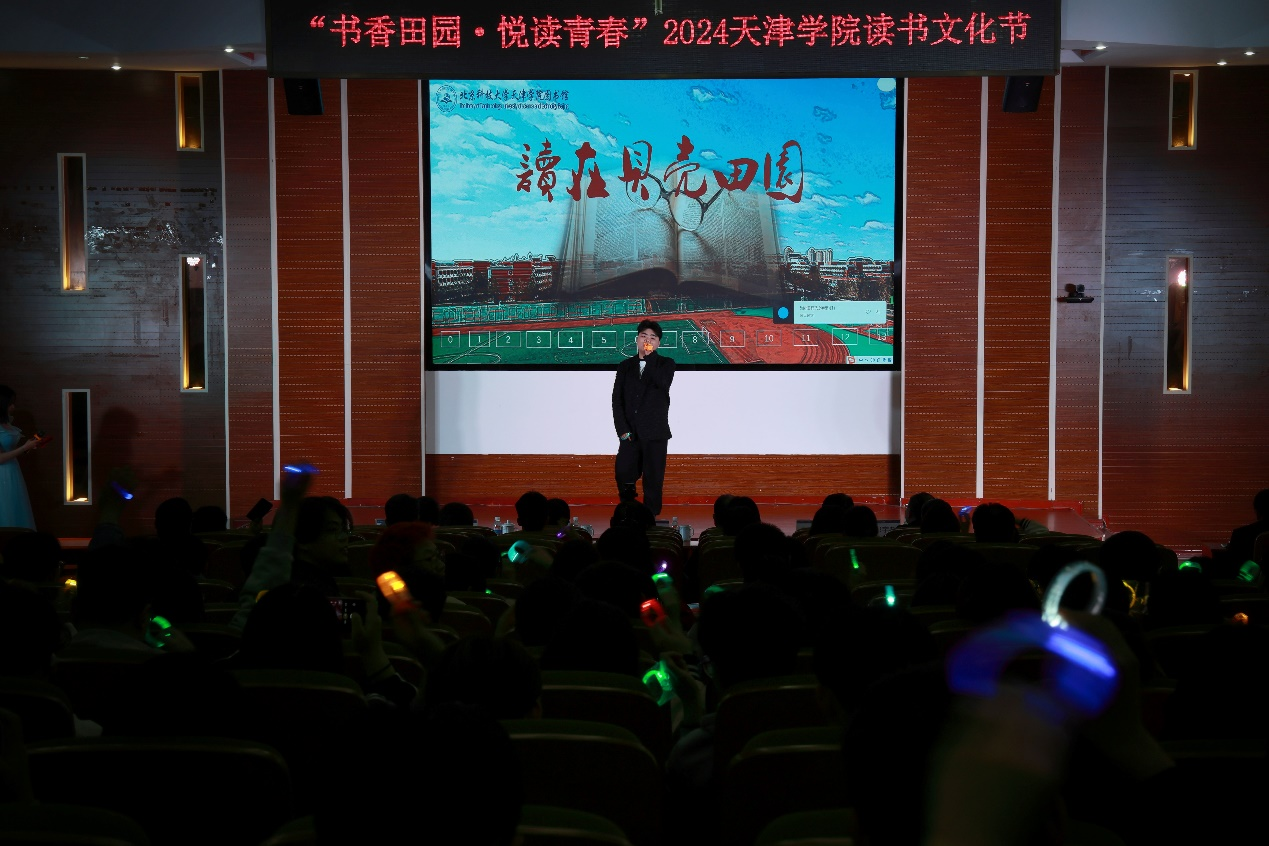 2024年4月23日晚7:00,图书馆在理工馆学术报告厅成功举办“书香田园·悦读青春”主题读书文化节晚会。宝坻区文化和旅游局局长吴庆娟、副局长张英,宝坻区图书馆馆长孙凤婷,文化馆馆长倪芳芳,问鼎国际 院长丁煦生,学院各部门负责人、图书馆全体馆员以及来自各院系师生300余人参加了晚会。