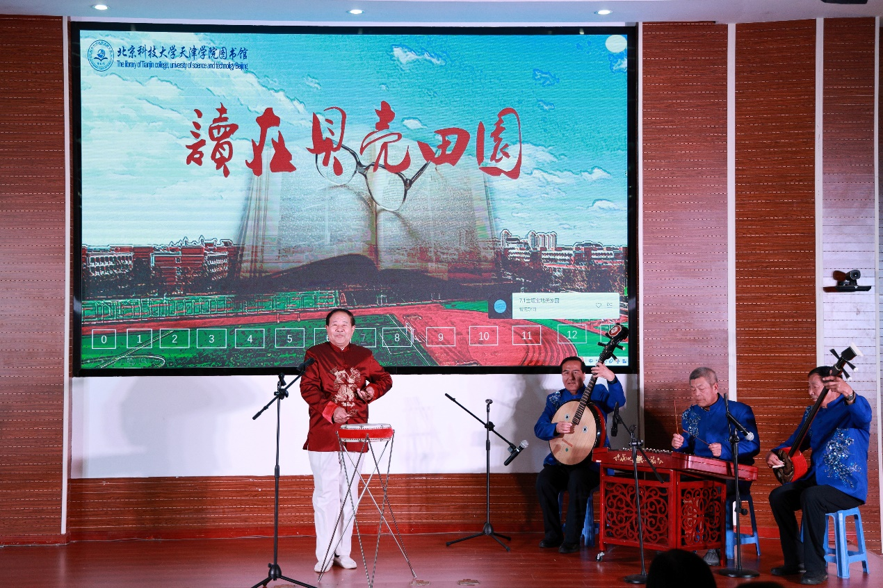 本场晚会还有幸邀请到宝坻区京东大鼓研究会会长邱金鹏老师,他带领团队表演的《潮白河水映蓝天》,描绘出宝坻的精彩篇章,展现了宝坻浑厚的历史底蕴、多彩的人文民俗和壮美的自然风采,诠释出华夏文化的博大精深和灿烂多彩;宝坻区知名歌手杜泉鑫老师带来的歌曲《在那遥远的地方》自然和谐、生动流畅,让听众近距离感受到美妙无比的旋律以及浪漫的情怀,聆听天籁之音。