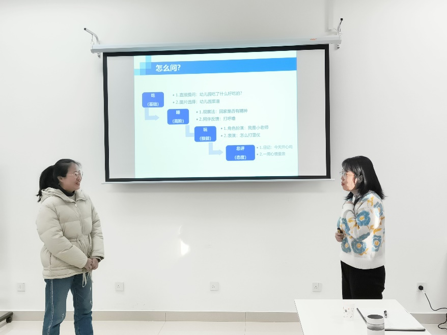 此次研讨会将12名学员分为两组,每组负责BOPPPS六个环节中的三个环节的推演和提炼。每个环节由一位教师代表进行演示并阐述10分钟,期间全体成员做针对性的建议与评价。其中,六个环节的阐述分别由王雪飞、张绚、左玉婷、李敏、任洁、年玥六位老师负责凝练和讲解。