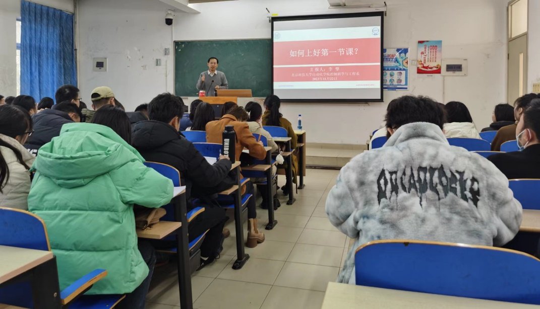 为深入学习党的二十大精神,帮助教师明确立德树人使命,树立良好师德师风,掌握扎实教育教学理论,炼就专业化教学基本功,筑牢站上讲台的职业之基,根据《教育部关于加快建设高水平本科教育全面提高人才培养能力的意见》文件的最新要求,学院组织开展以“如何上好第一节课”为主题的2023年青年教师执教能力专题培训。2023年11月22日下午3点,第六期导师引领大讲堂在9教207顺利举行,特邀请北京科技大学自动化学院党委书记、博士生导师李擎教授作为主讲嘉宾。