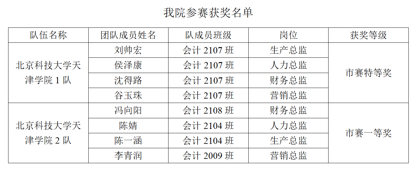 2023年9月16日,第十九届全国大学生数智化企业经营沙盘大赛天津市赛在天津工业大学落下帷幕。我院一直高度重视人才培养模式的改革与创新,鼓励各院系积极参加各类竞赛,以期达到以赛促教、以赛促学、以赛促改的目的。此次比赛在教务处高度支持下,由管理学院王晓欣、张媛、李双双三位老师指导带队,经过会计学专业8名学生夜以继日的不懈努力,最终两队参赛队伍分别取得市赛特等奖、市赛一等奖的好成绩。