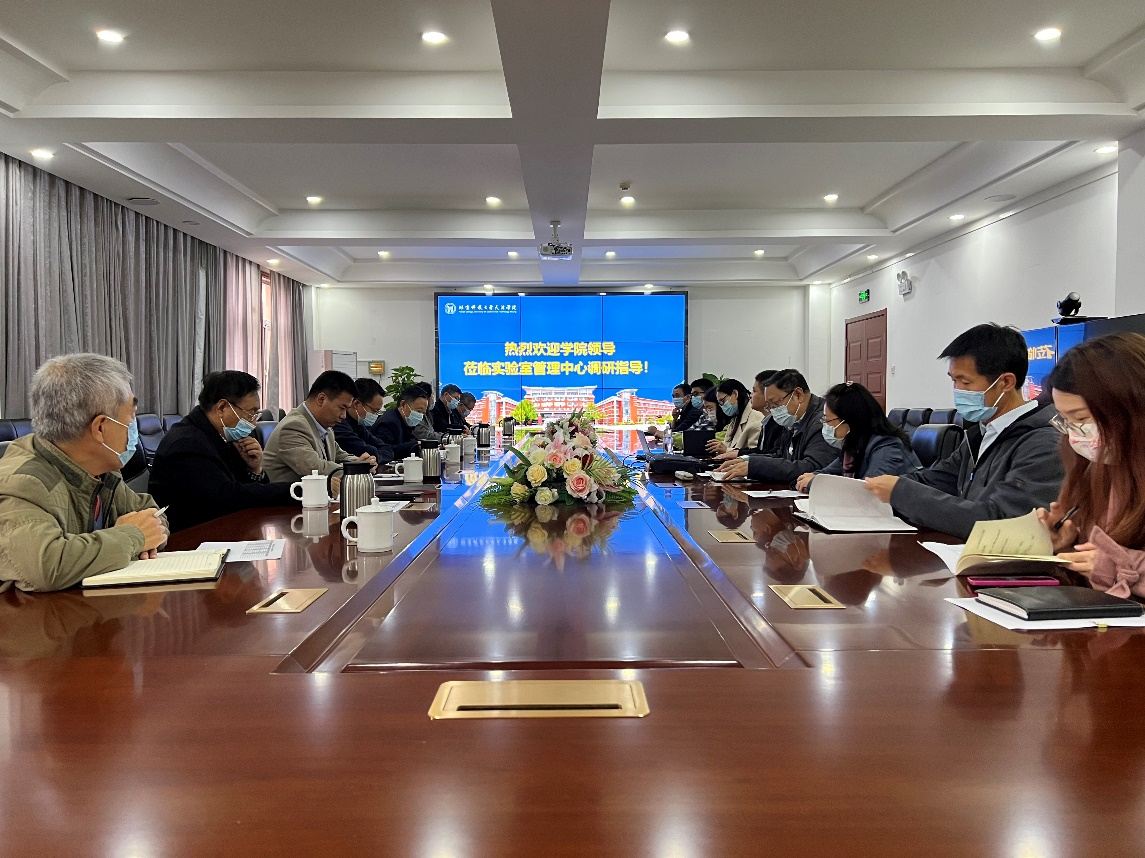 为深入学习贯彻党的二十大精神,深化教育教学改革,推动学院高质量发展,10月28日下午,问鼎国际 院长丁煦生、党委书记叶振楠率学院领导班子成员及相关部门负责人一行9人,深入实验室管理中心调研指导工作,调研座谈会在12教300会议室举行。实验室管理中心全体教师参加调研座谈。