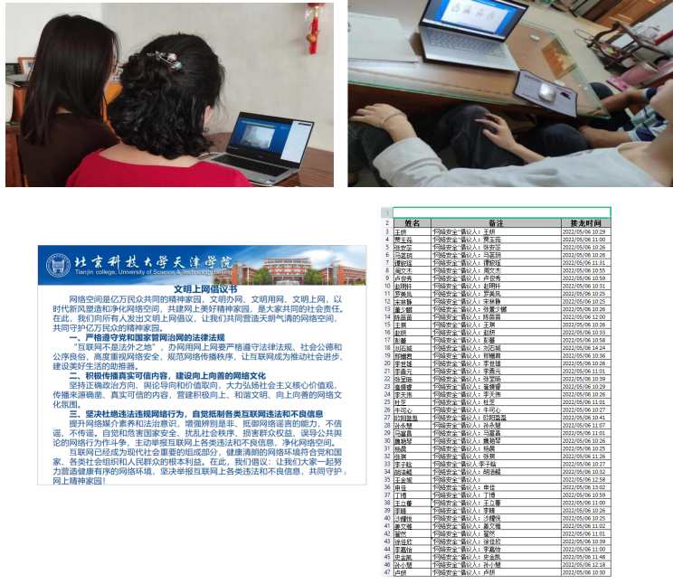 全体辅导员针对全院学生围绕网络安全教育主题,召开线上主题班会,向同学们普及网络安全知识和网络安全责任,让学生明白“什么可以网上讲、什么不可以网上讲、讲了要负什么责任”,确保全知晓、真理解。通过主题班会让学生发表网上观点时要注意真实性,不转发不实信息、不良信息和负面信息,做到不造谣、不信谣、不传谣,主动承担社会责任,自觉做正能量的传播者。