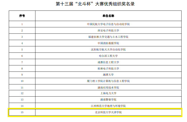 近日,由教育部科学技术司、共青团中央学校部、中国科协青少年科技中心、中国卫星导航系统管理办公室等相关部门共同主办的第十三届“北斗杯”全国青少年科技创新大赛全国总决赛落下帷幕,我院无人机系杨凯欣、张素杰两位教师指导的学生团队取得无人机赛项全国一等奖1项、天津市一等奖1项、二等奖1项,学院荣获优秀组织奖。