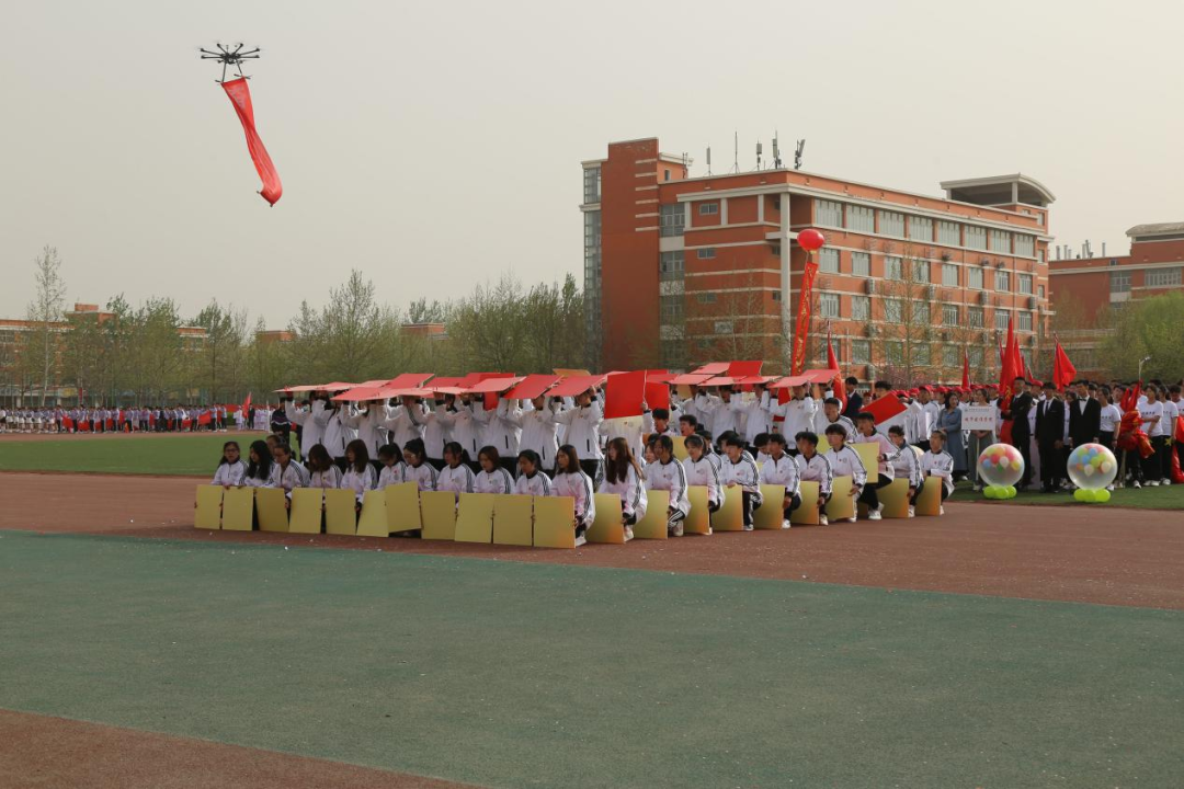信息工程学院方阵科技感十足,用无人机技术悬挂起“奋斗百年路 启航新征程”的条幅,将对党对国家对学校的祝福展现在操场上空。