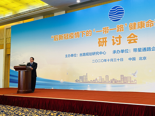 2020年10月30日,温建民教授应邀出席在北京钓鱼台国宾馆召开的“后新冠疫情下的‘一带一路’卫生健康共同体建设研讨会”,并发言。