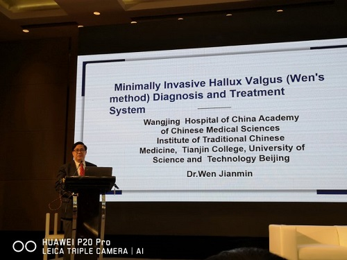 2019年4月26日至27日,温建民教授受邀参加了在上海召开的“2019华夏足踝外科大会暨第十届上海国际足踝外科高峰论坛”,并作了题为《微创拇外翻(温氏法)诊疗体系》的主旨演讲。
