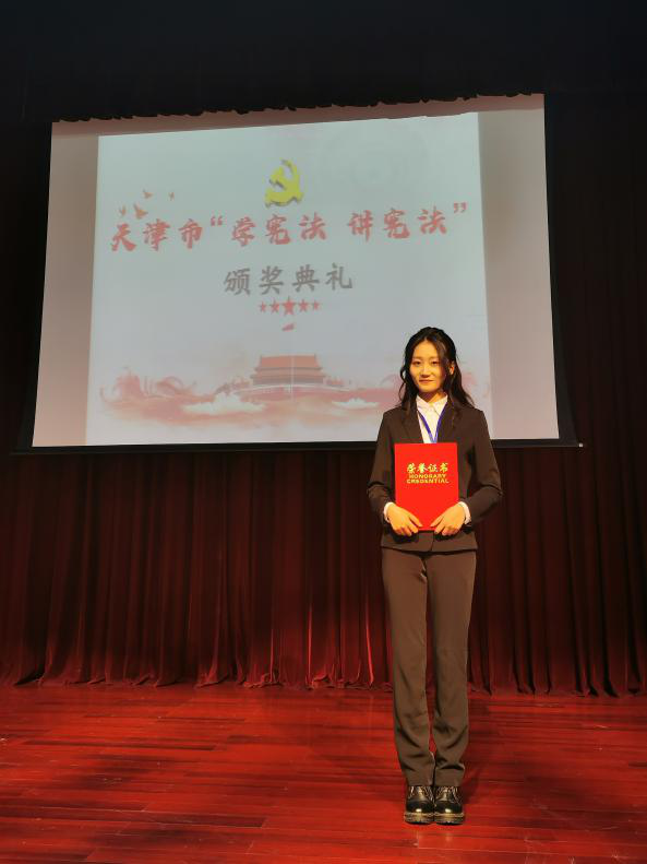 9月29日,天津市第四届学生“学宪法 讲宪法”演讲比赛暨教育部第五届全国学生“学宪法 讲宪法”活动天津赛区选拔赛在中国民航大学举行。我院法律系法学1906班梁宇菲同学经初赛、决赛层层选拔,最终荣获市高校组一等奖。