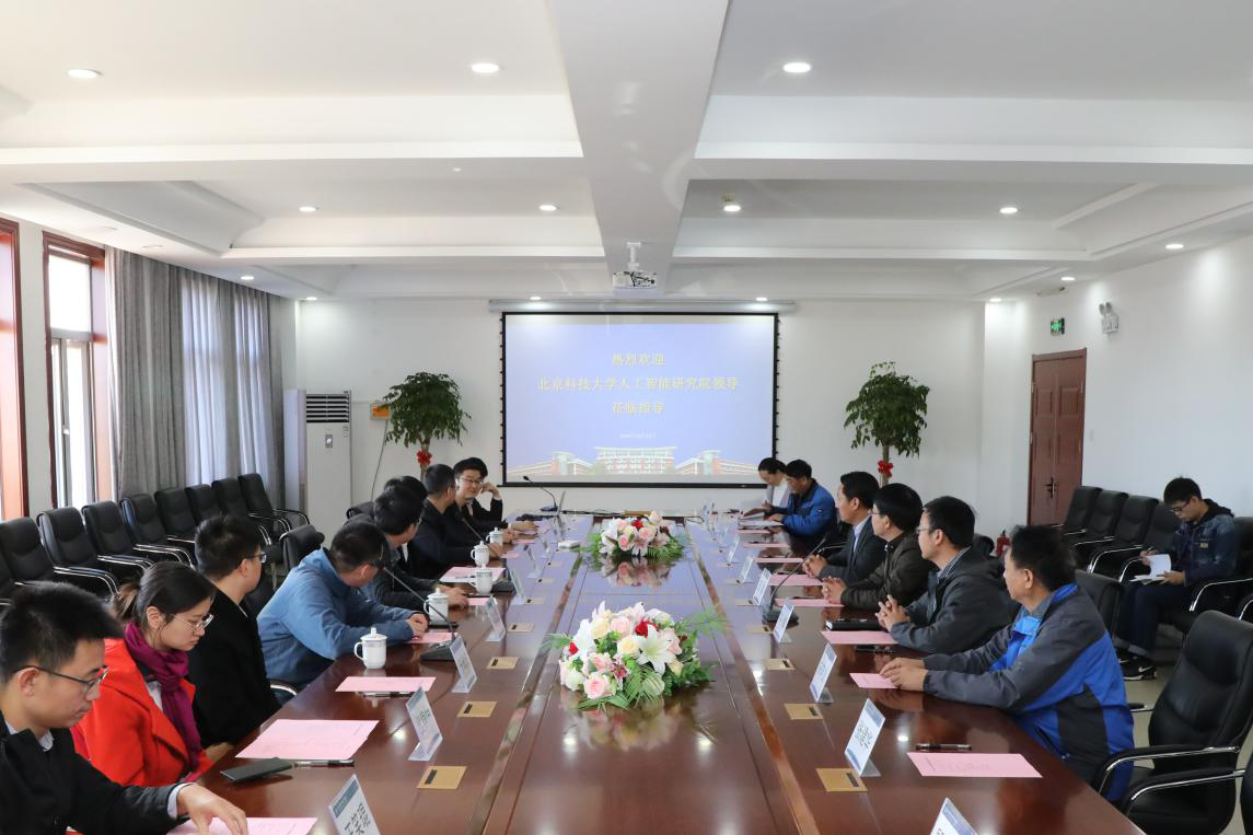 10月23日上午,北京科技大学人工智能研究院院长贺威,副院长张海君、李翰超一行莅临我院考察交流,学院院长王斌,副院长张永锋,党委副书记牛犁,财务总监王俊敏,院长助理兼学术委员会主席宋存义以及学院办公室、教务处、智能制造学院、信息工程学院、无人机系等相关部门和院系负责同志陪同考察。