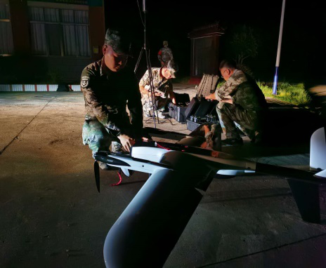 凌晨3:00按照导调组统一安排,我院无人机分队准时到达演习区域,与红方指挥员分析作战任务,制定无人机侦察方案,协助红方完成突袭演练。在演练中,队员们积极探索无人机在山地作战的作用,深度分析基于实战全天候环境的无人机技术需求,分析实战环境对无人机操纵人员要求。我院无人机系预备役队员不顾疲劳,发扬我军不怕吃苦、连续作战的作风,对某演习区域进行无人机侦察,同时根据气象预报有效规避雷爆、阵雨等气象环境对无人机及操纵人员带来的风险,充分展示我院无人机系教师团队无人机战术运用的能力和一流的无人机系统操纵和维护水平。