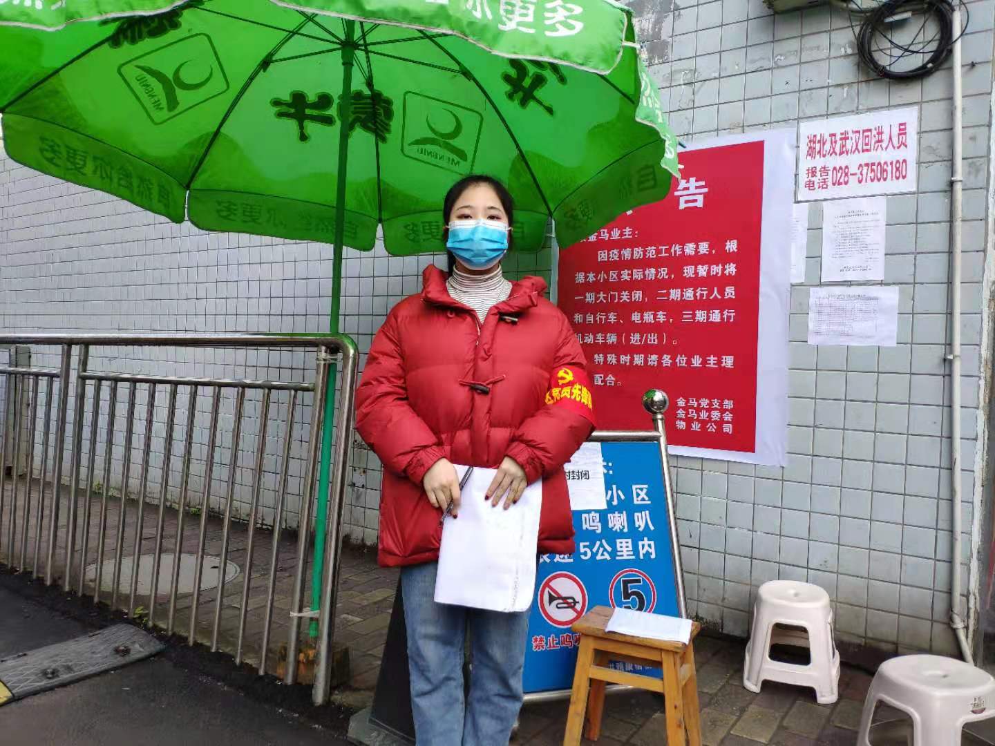 会计1903班李柯颖同学,在四川省洪雅县金马小区进行志愿服务,主要工作内容是负责上门入户排查、居民进出小区登记等。