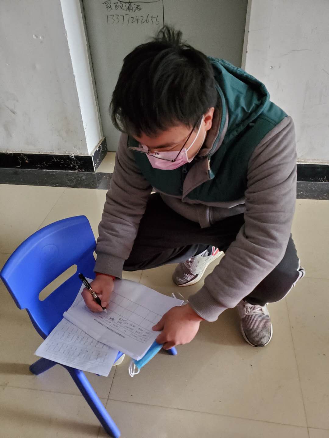 金融1801班宋世祥同学,在山西省临汾市尧都区坂下社区会担任志愿者,负责人员排查情况的电子录入和进行社区普及宣传工作。