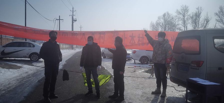 物流1701班邓帅同学,在天津市蓟州区官庄镇北朱庄子村,进行来往车辆排查,消毒,宣传防疫知识工作,并对过往村民进行体温检测。