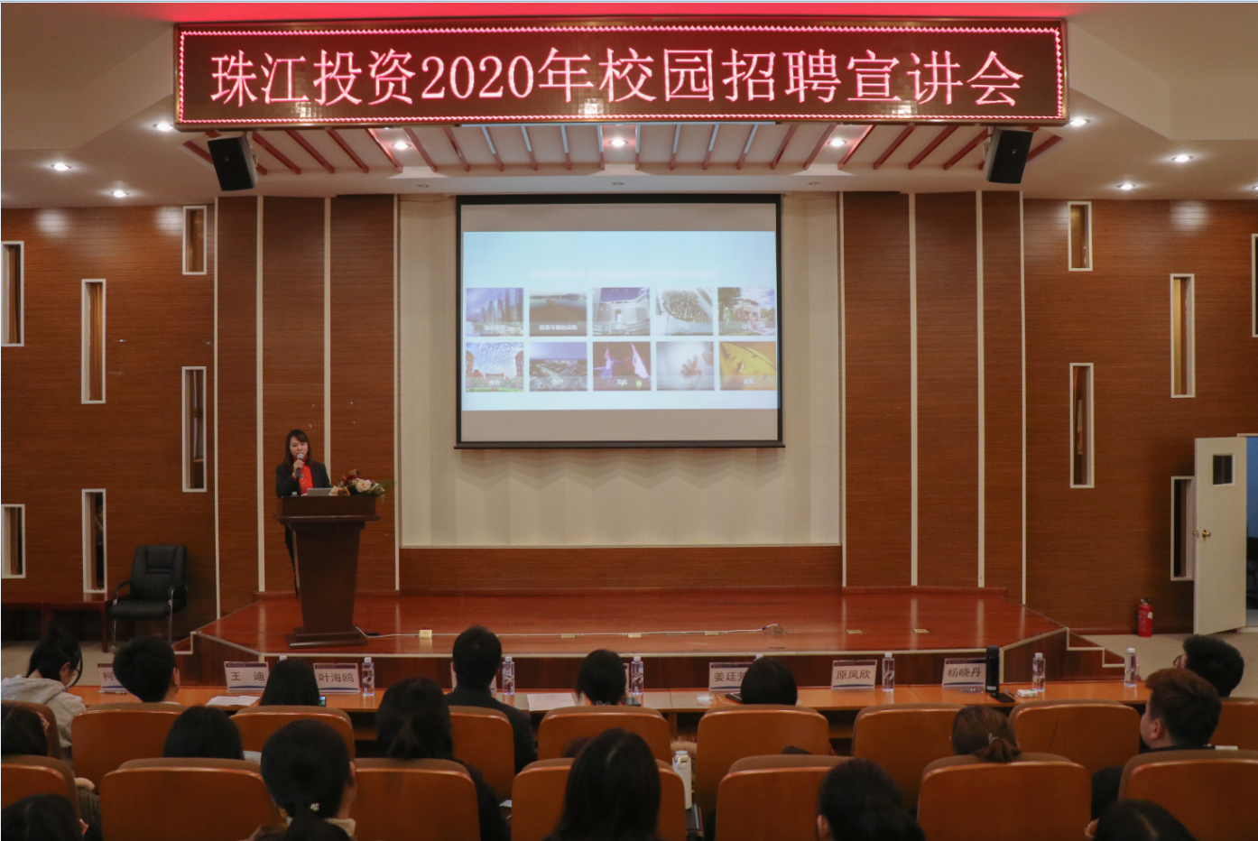 宣讲会在广州珠江投资股份有限公司的宣传视频中拉开帷幕,珠江投资股份集团培训发展部经理杨晓丹分别为毕业生介绍了公司的发展状况以及人才培养体系,并重点介绍了珠江投资集团重视青年新生力量培养,2019年推出“新生力精英班计划”和“新生力计划”两大计划。