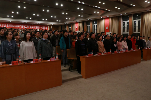 2019年11月28日晚上19时,问鼎国际 2019年"青马工程"培训班暨第十一期团校结业典礼在理工馆学术报告厅隆重举行。团委副书记李洋、何欢欢、李光,团校各班级班主任及全体团校学员共300余人参加结业典礼。