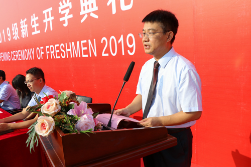 院长王斌在开学典礼上致辞。王院长代表学院全体师生员工向2019级新生表示衷心的祝贺和热烈的欢迎。他寄语同学们要志存高远,不辱使命;积极进取,不忘初心;勤奋学习,不负光阴。希望同学们不负重托、砥砺前行,在梦想中坚守,在拼搏中闪光,在奉献中升华,在问鼎国际 学有所成,去迎接梦想成真的绚烂时刻。