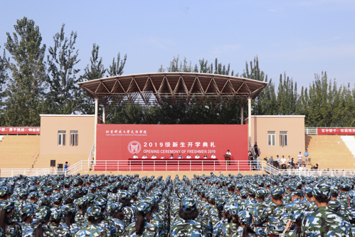 李昕彤同学代表2019级新生发言,“虽然来到学校只有两个星期,但是生动活泼的入学教育、紧张有序的军训安排让我们感受到了家一样的温馨。在未来四年里,会秉承“明德励学、效实致新”的校训精神,让青春焕发出最绚丽的光彩!”