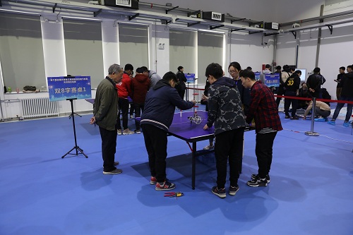 我校五支代表队经过淘汰赛和决赛的激烈角逐,在181支队伍中,物料机器人一队第14名,物料机器人二队第12名,“8”字型赛道一队第12名,“8”字型赛道二队第16名,“S”型赛道第20名;我校代表队的工程设计方案中各项得分,均居首位。
